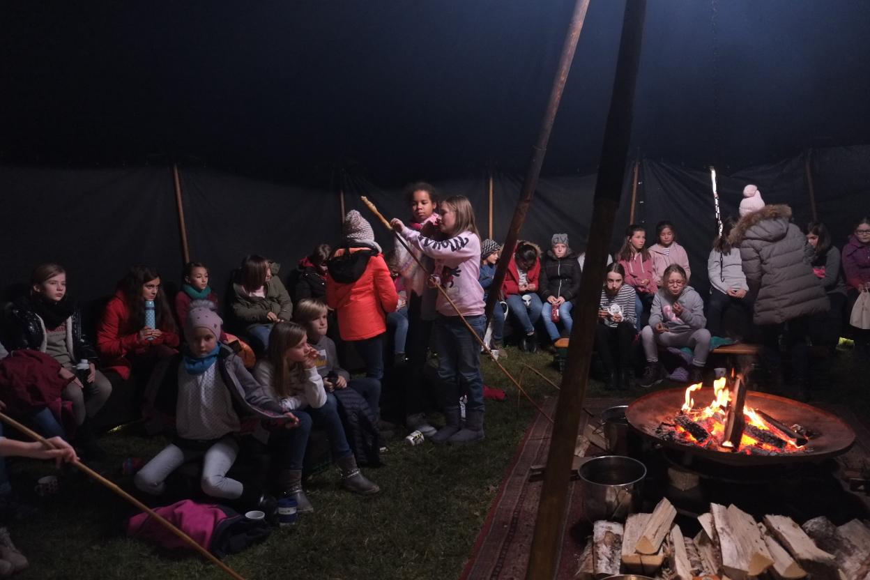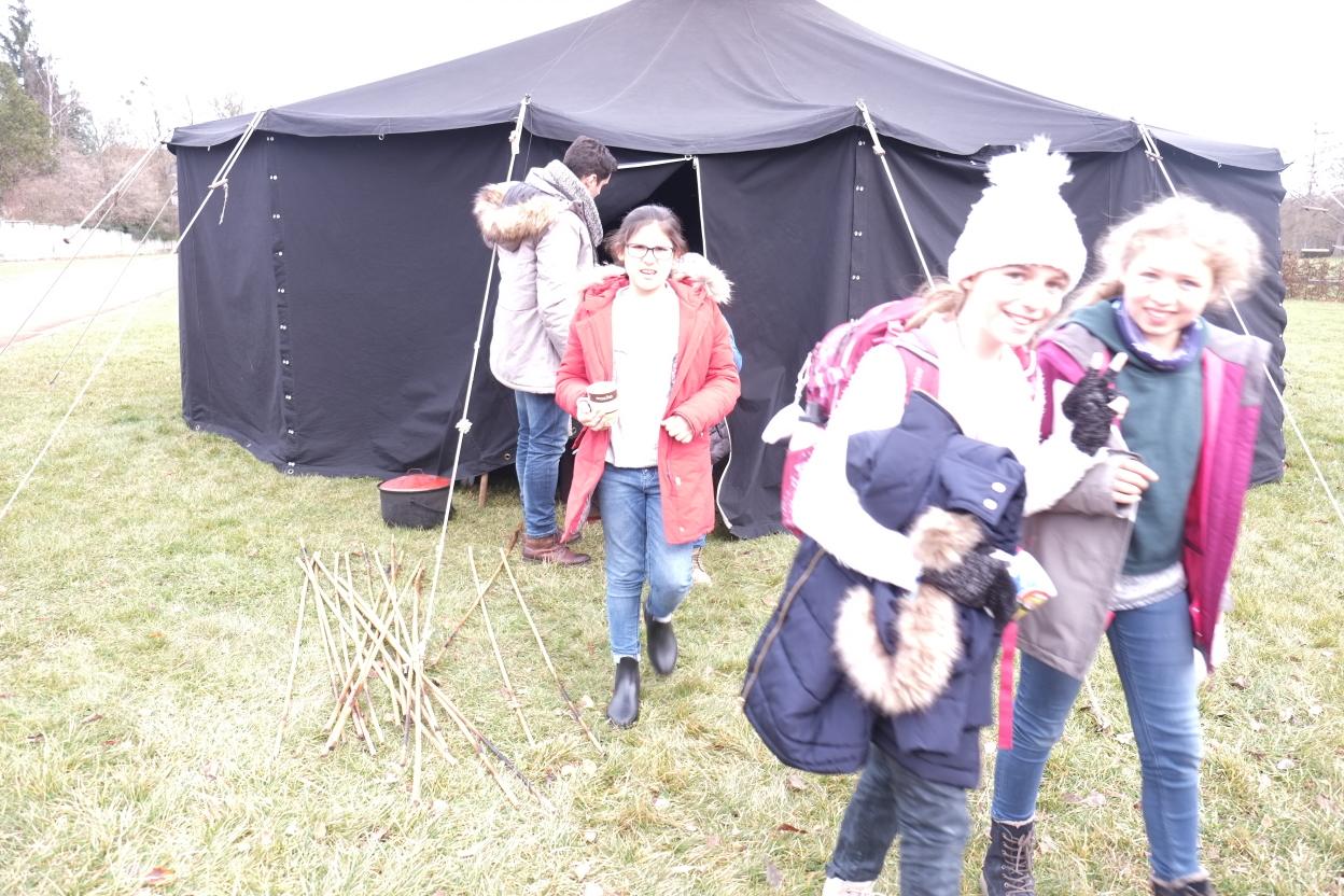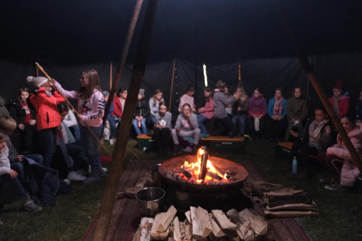 Am 17.12. 2019 durften unsere fünften Klassen noch ein besonderes vorweihnachtliches Highlight am Maria-Ward-Gymnasium erleben. Märchenerzähler Matthias Fischer aus Augsburg brachte dabei die Augen der jungen Schülerinnen mit seinen vielseitigen und detaillierten Beschreibungen zum Leuchten. Am warmen Lagerfeuer in seinem Märchenzelt und zu leckerem selbstgemachten Punsch erfuhren die Schülerinnen Erzählungen aus nah und fern. U.a. lauschten sie einer unheimlichen und „längst vergessenen Weihnachtsgeschichte aus Irland“, bei der einen Schatz bewachende Steine lebendig wurden, dem schmerzlichen Bericht des „verletzten Drehzehs der Kleeseerehfee“, der für viele Lacher sorgte, und einer modernen Weihnachtserzählung aus Japan, bei der den Schülerinnen klar wurde, dass es beim Weihnachtsfest eben nicht um die meisten und größten Geschenke geht. Diese Geschichte erzähle er nur klugen Kindern, weil sie viele nicht verstünden, betonte Fischer. Zuletzt erprobten sich die Schülerinnen gemeinsam beim Stockbrotgrillen, sodass auch der Magen zufriedengestellt werden konnte.