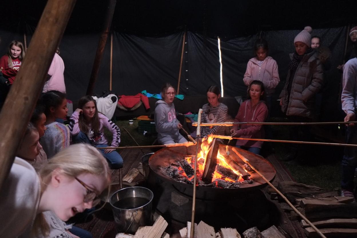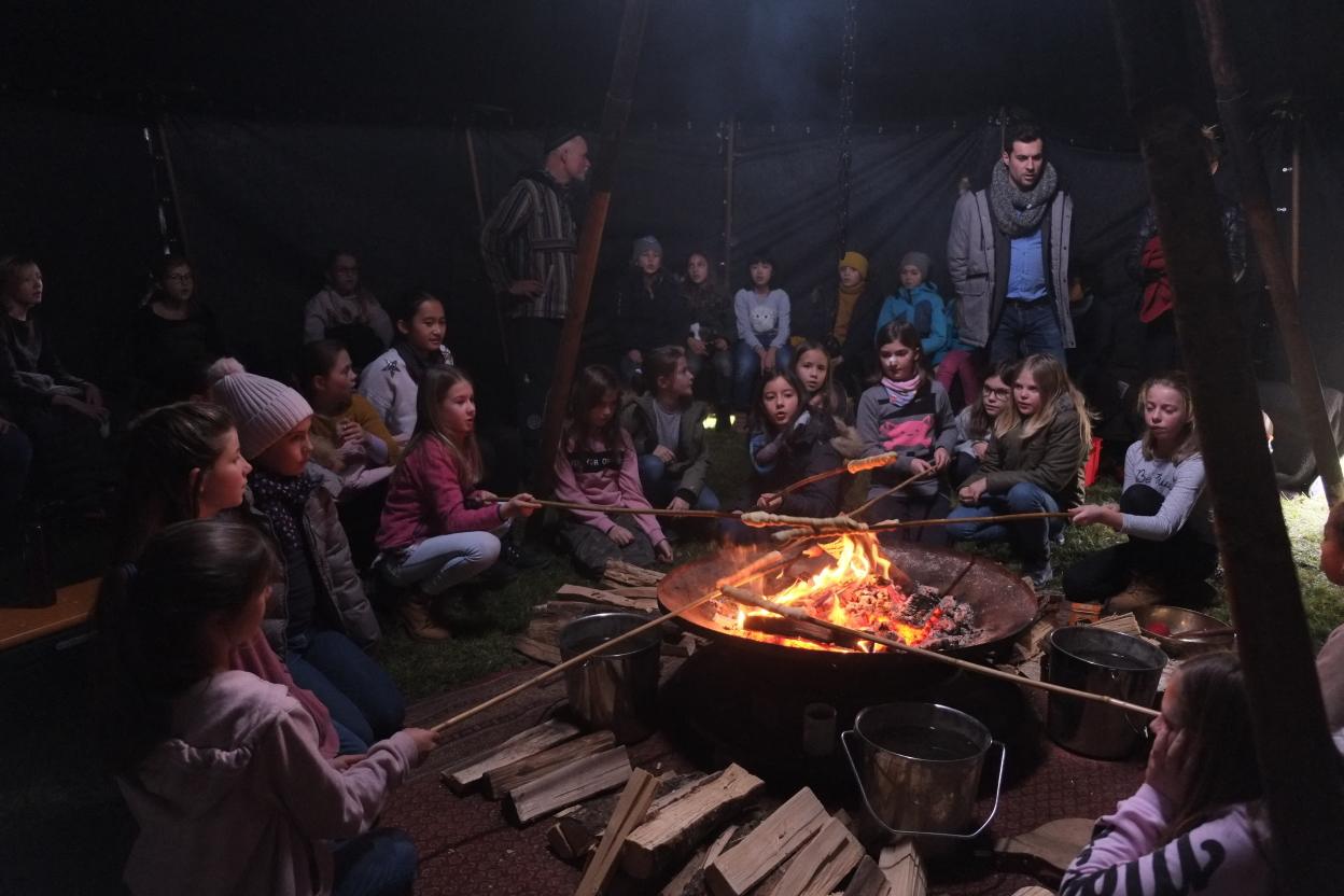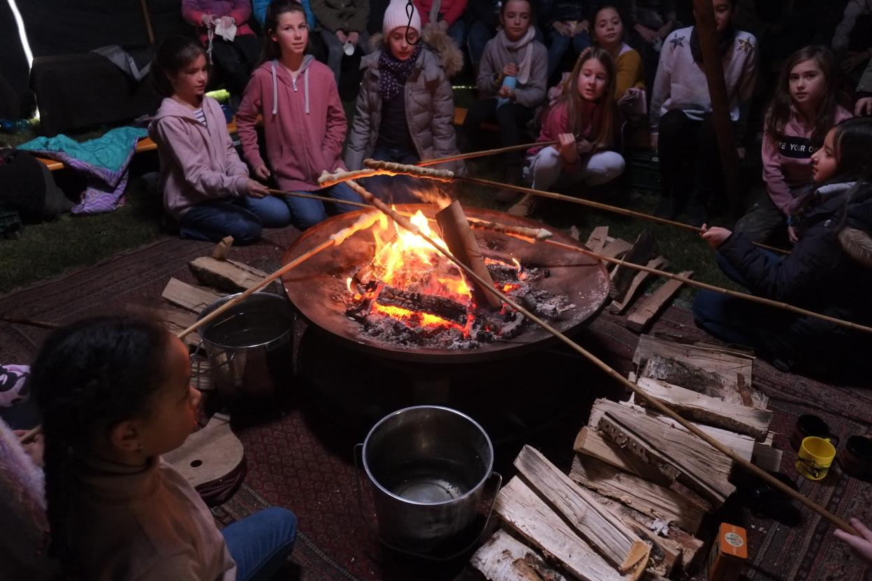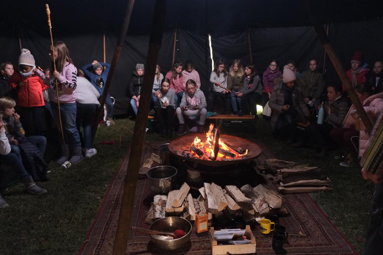 Am 17.12. 2019 durften unsere fünften Klassen noch ein besonderes vorweihnachtliches Highlight am Maria-Ward-Gymnasium erleben. Märchenerzähler Matthias Fischer aus Augsburg brachte dabei die Augen der jungen Schülerinnen mit seinen vielseitigen und detaillierten Beschreibungen zum Leuchten. Am warmen Lagerfeuer in seinem Märchenzelt und zu leckerem selbstgemachten Punsch erfuhren die Schülerinnen Erzählungen aus nah und fern. U.a. lauschten sie einer unheimlichen und „längst vergessenen Weihnachtsgeschichte aus Irland“, bei der einen Schatz bewachende Steine lebendig wurden, dem schmerzlichen Bericht des „verletzten Drehzehs der Kleeseerehfee“, der für viele Lacher sorgte, und einer modernen Weihnachtserzählung aus Japan, bei der den Schülerinnen klar wurde, dass es beim Weihnachtsfest eben nicht um die meisten und größten Geschenke geht. Diese Geschichte erzähle er nur klugen Kindern, weil sie viele nicht verstünden, betonte Fischer. Zuletzt erprobten sich die Schülerinnen gemeinsam beim Stockbrotgrillen, sodass auch der Magen zufriedengestellt werden konnte.