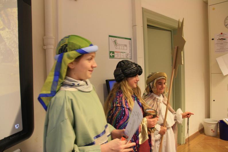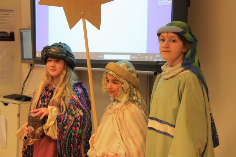 Eine liebgewonnene Tradition fand am 07. Januar, einen Tag nach dem kirchlichen Hochfest Heilige Drei Könige, statt. Die Sternsinger in personae Franziska Harfensteller (R 10a), Theresa Harfensteller (R 5a), Johanna Obal (G 8a) und Magdalena Decker (G 7b) besuchten die 5. und 6. Klassen von Realschule und Gymnasium, die Lehrerkollegien und Sekretariate sowie die Schwestern der Congregatio Jesu.