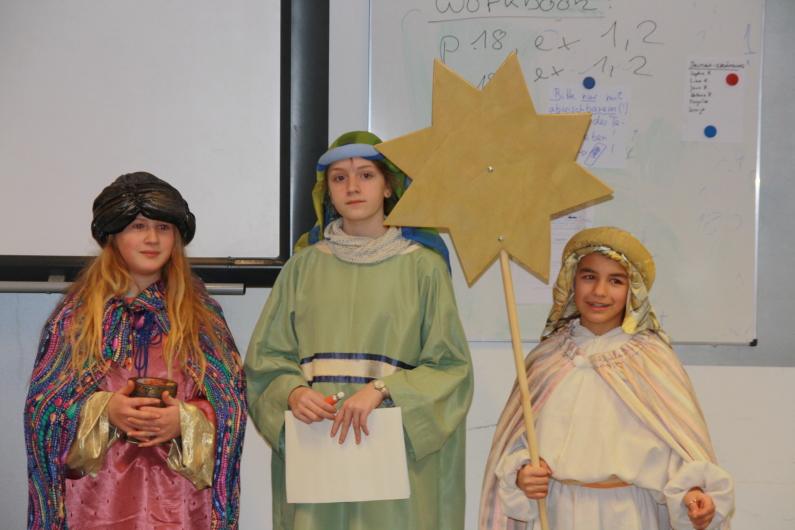 Bei der Spenden-Sammlung für notleidende Kinder in aller Welt kamen an unseren Schulen 395,50 Euro zusammen. Besonders erwähnt seien dabei die Schülerinnen der R 10a, die statt des Wichtelns in der Klasse einen eigenen Geldbetrag beisteuerten, wofür sie natürlich ebenfalls durch die „Königinnen“ besucht wurden.