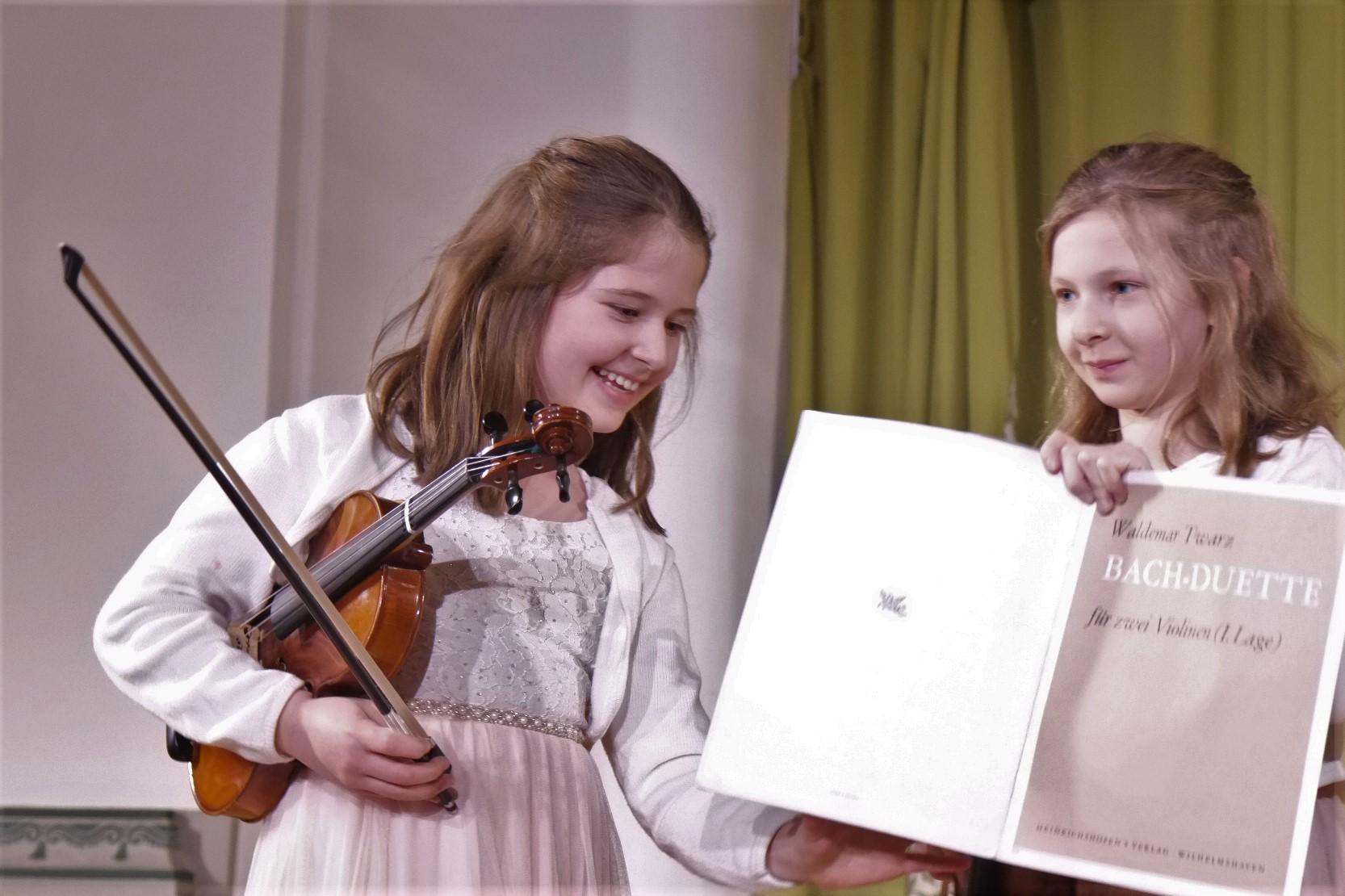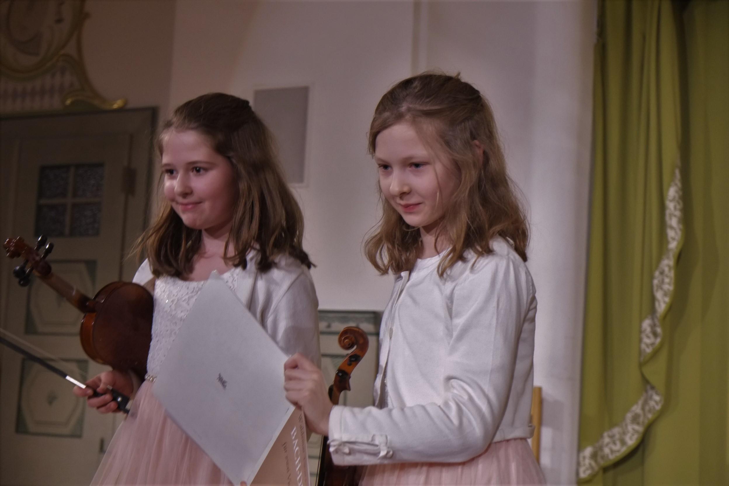 Nach der freundlichen Begrüßungsansprache von Frau Zeilinger begann der Abend mit einem sehr musikalischen Auftakt auf der Querflöte begleitet von Frau von Kirschten am Klavier. Die Schülerin spielte eine Sonate von Telemann aus der Epoche Barock. Danach spielte ein Geigenduett ein Menuett von Bach. Das darauffolgende italienische Volkslied und „Can you feel the love tonight“ aus „König der Löwen“ wurde ausdrucksstark gesungen. Ich spielte ein Stück von Rameau auf dem Klavier.