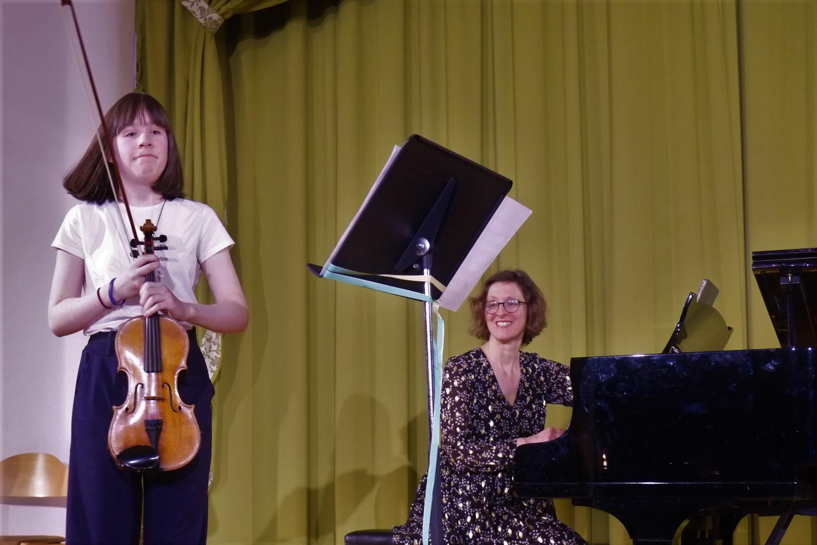 Es ging mit der Klassik weiter, mit einer wunderschönen Romanze von Beethoven vorgetragen auf der Geige begleitet von Frau von Kirschten. Anschließend spielte eine Schülerin auf dem Klavier eine Mazurka von Chopin. Voll Eleganz wurde aus „The Greatest Showman“ „Never Enough“ gesungen. Es folgte eine Sonate von Edvard Grieg auf dem Klavier. Im Anschluss wurde „Primavera“ auf dem Klavier vorgetragen. Ein selbst arrangiertes und cooles Medley der Band „All Time Low“ trugen zwei Schwestern, aus der Q11, vor.