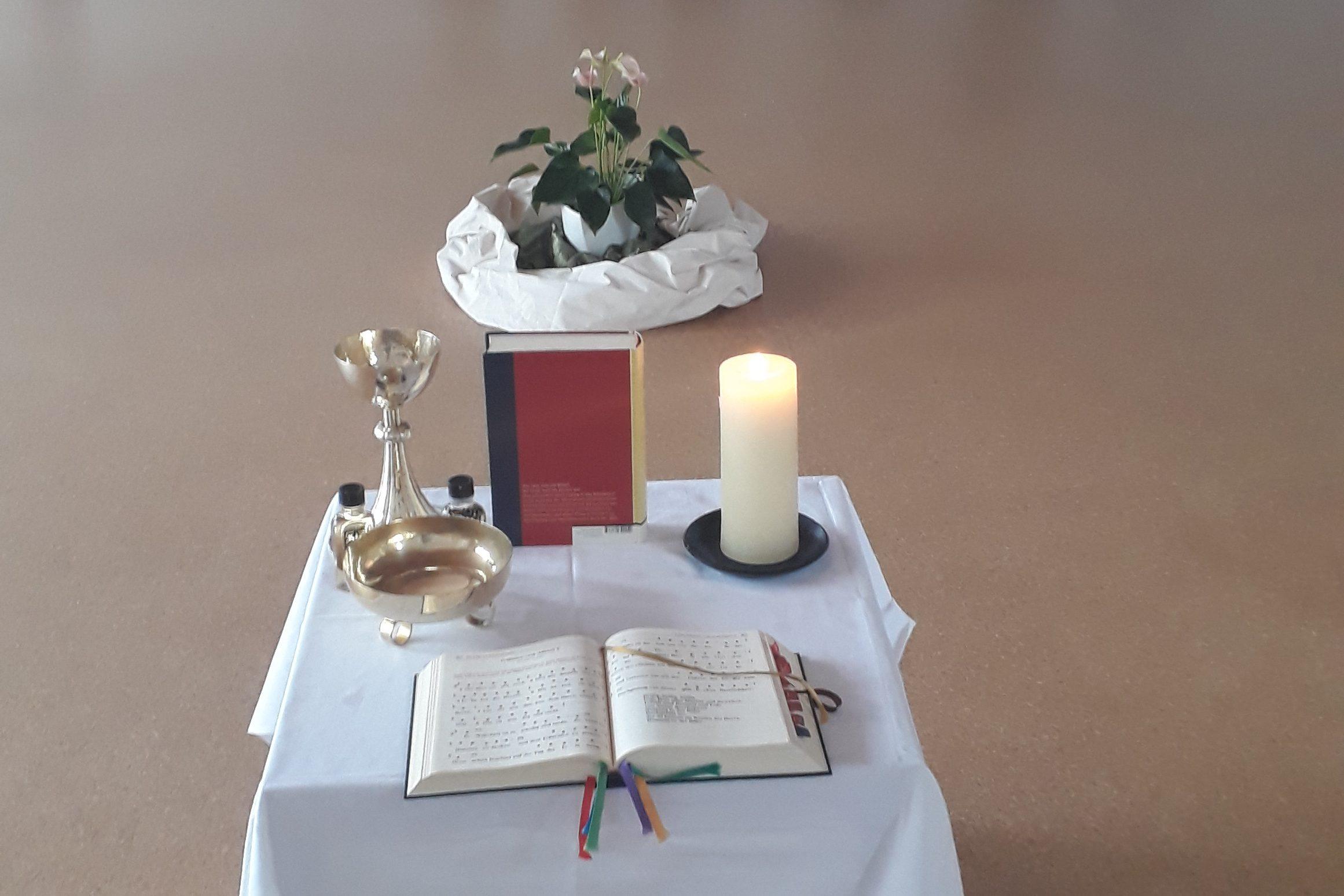 Nach dieser theoretischen Einführung begaben wir uns am Mittwoch in den Meditationsraum, der von Pfarrer Bauer bereits liebevoll für die Messfeier eingerichtet worden war. Pfarrer Bauer sammelte Fürbitten ein, die die Mädchen zum Vortrag in der Heiligen Messe zu Hause formuliert hatten, und legte sie vor den Altar, um unsere Bitten vor Gott zu tragen. Die Schülerinnen, die nicht kommunizieren wollten oder konnten, empfingen stattdessen einen sehr schönen und persönlichen Segen.