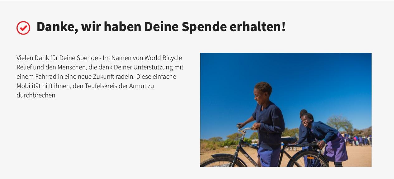 Das Schulradeln wurde mit einer Spendenaktion zugunsten von World Bicycle Relief verbunden. Hierbei konnten Spenden in Höhe von 3105€ gesammelt werden. Mit Eurer Unterstützung können damit 23 Fahrräder für Schülerinnen in Afrika zur Verfügung gestellt werden. Herzlichen Dank!