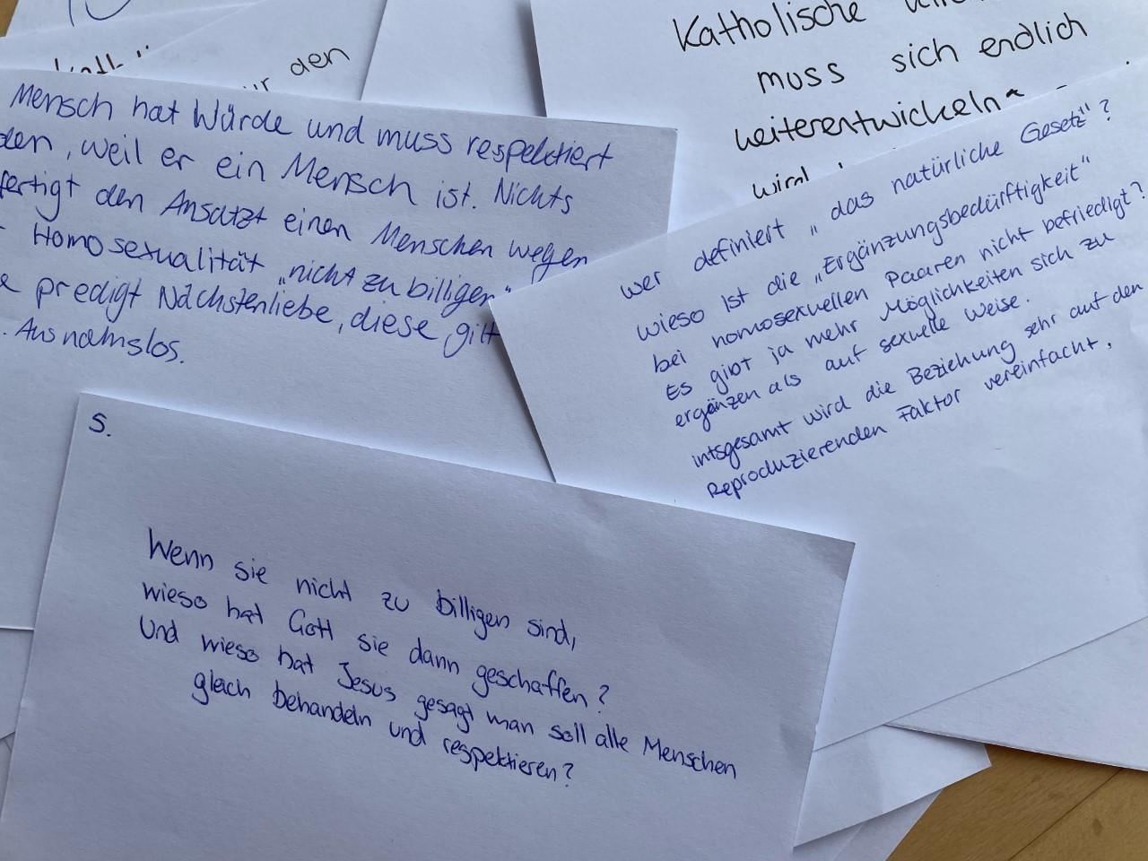 Ähnlich formulierte auch Kardinal Reinhard Marx: „Die einen sagen, der geht zu weit, die anderen sagen, der geht nicht weit genug.“ Er verwies darauf, „dass Homosexuelle in der Kirche willkommen seien.“ Andererseits betonte er: „Eine Eheschließung sei nicht möglich. Das Sakrament der Ehe ist auf die treue Beziehung zwischen Mann und Frau ausgerichtet, die offen ist für Kinder.“ Stattdessen würde diskutiert, dass gleichgeschlechtliche Paare eine „Segnung im Sinne einer seelsorglichen Begleitung“ bekommen könnten, die aber „keine eheähnliche Beziehung darstelle“, so Marx.