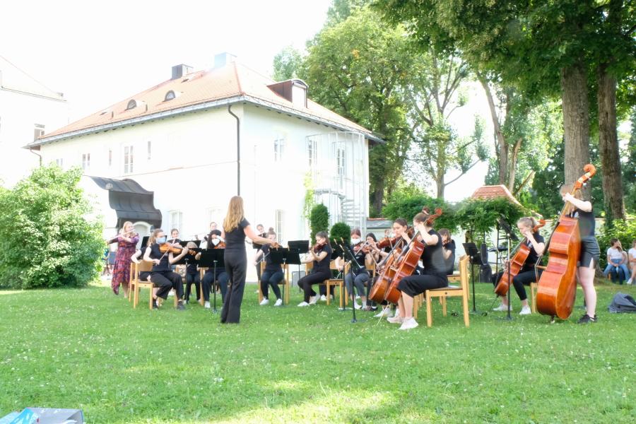 Am 27.07.2021 gaben die verschiedensten Musikgruppen unserer Schule unter strahlendem „bayerischen“ Himmel (weiße Wolken vor blauem Hintergrund) für unsere Schulfamilie ein „Open-Air“-Konzert.