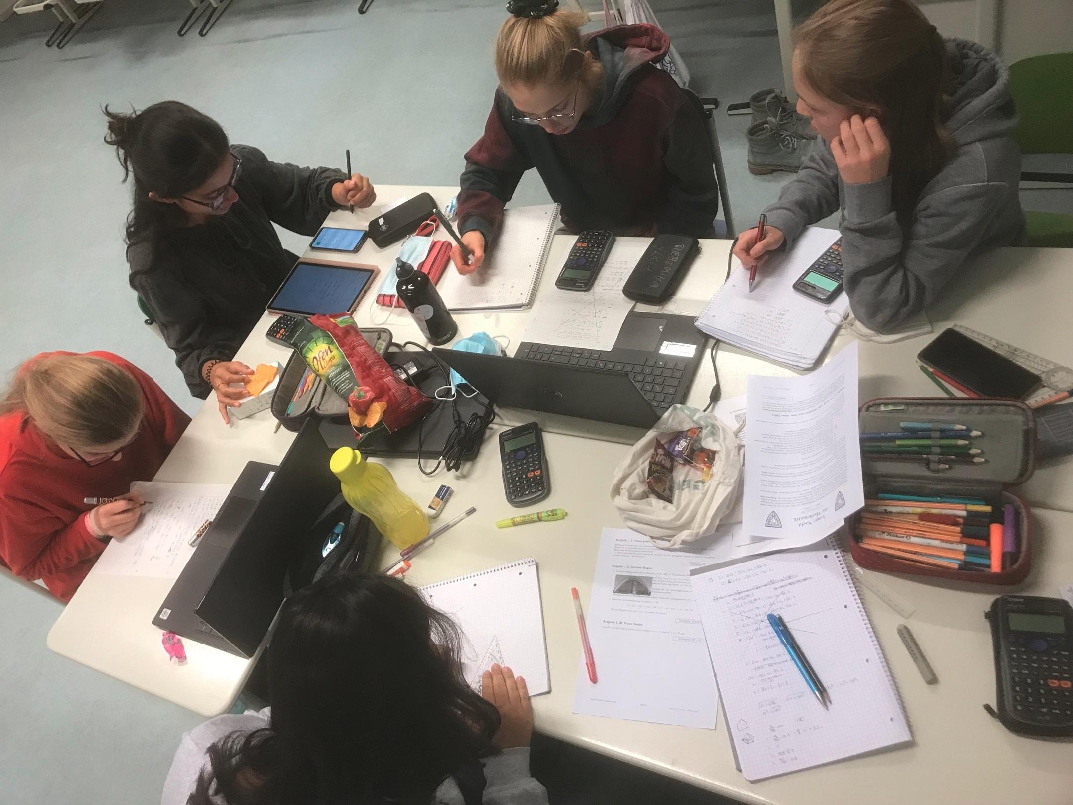 In der Nacht vom Freitag auf Samstag (19.11./ 20.11.) fand die lange Nacht der Mathematik statt. Das ist ein Wettbewerb, der am Freitagabend um 18 Uhr beginnt und über die Nacht bis Samstagmorgen um 8 Uhr geht. Hierbei kann man in Kleingruppen zehn Aufgaben lösen, um in die nächste Runde zu gelangen. Insgesamt besteht der Wettbewerb aus drei Runden. Dieses Jahr haben zum ersten Mal sechs Schülerinnen der Mathe AG aus der Q11 daran teilgenommen.