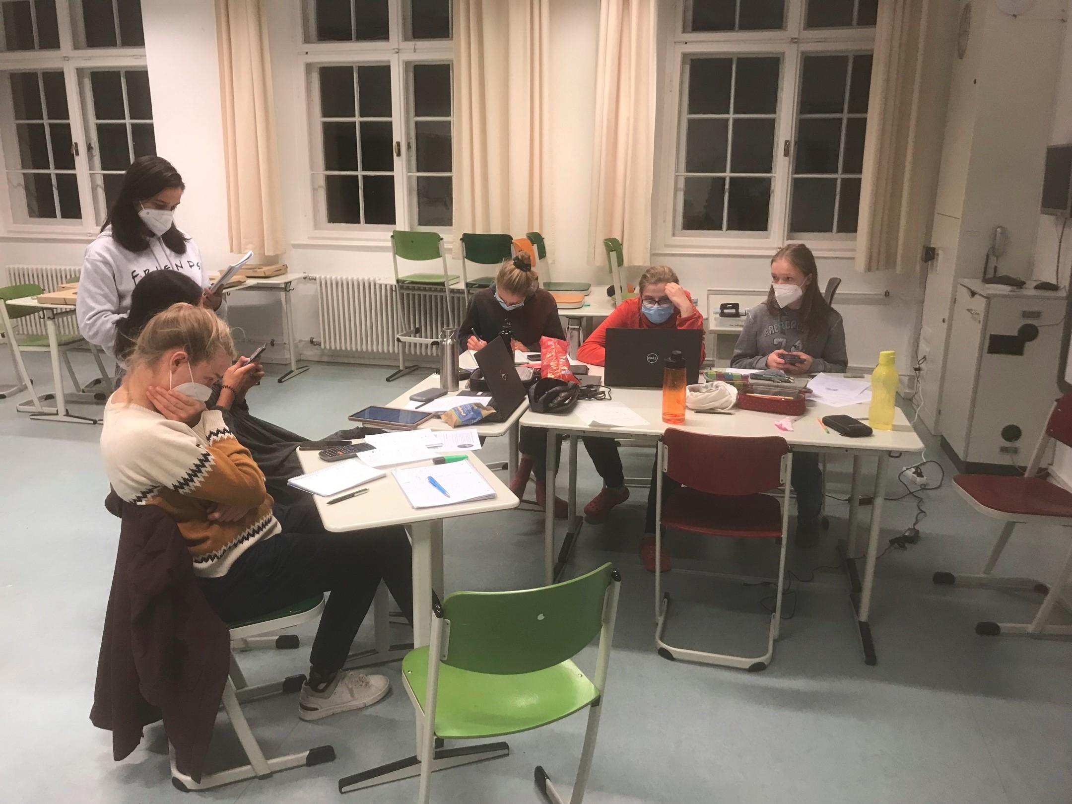 Die Anmeldung zum Wettbewerb geschah recht kurzfristig, als wir durch eine externe Person auf diesen spannenden Wettbewerb hingewiesen wurden. Wir haben dann trotz der aktuellen pandemischen Lage die Möglichkeit gehabt in der Schule zu übernachten. Wir danken Herr Dr. Gruber dafür, dass er dies genehmigt hat! Aufgrund von Krankheitsfällen und der Kurzfristigkeit war es uns nicht möglich eine Mathematiklehrkraft zu finden, die uns betreuen würde. Wir sind Frau Schultes sehr dankbar dafür, dass sie eingesprungen ist und sich dazu bereiterklärt hat, die Nacht mit uns an der Schule zu verbringen!
