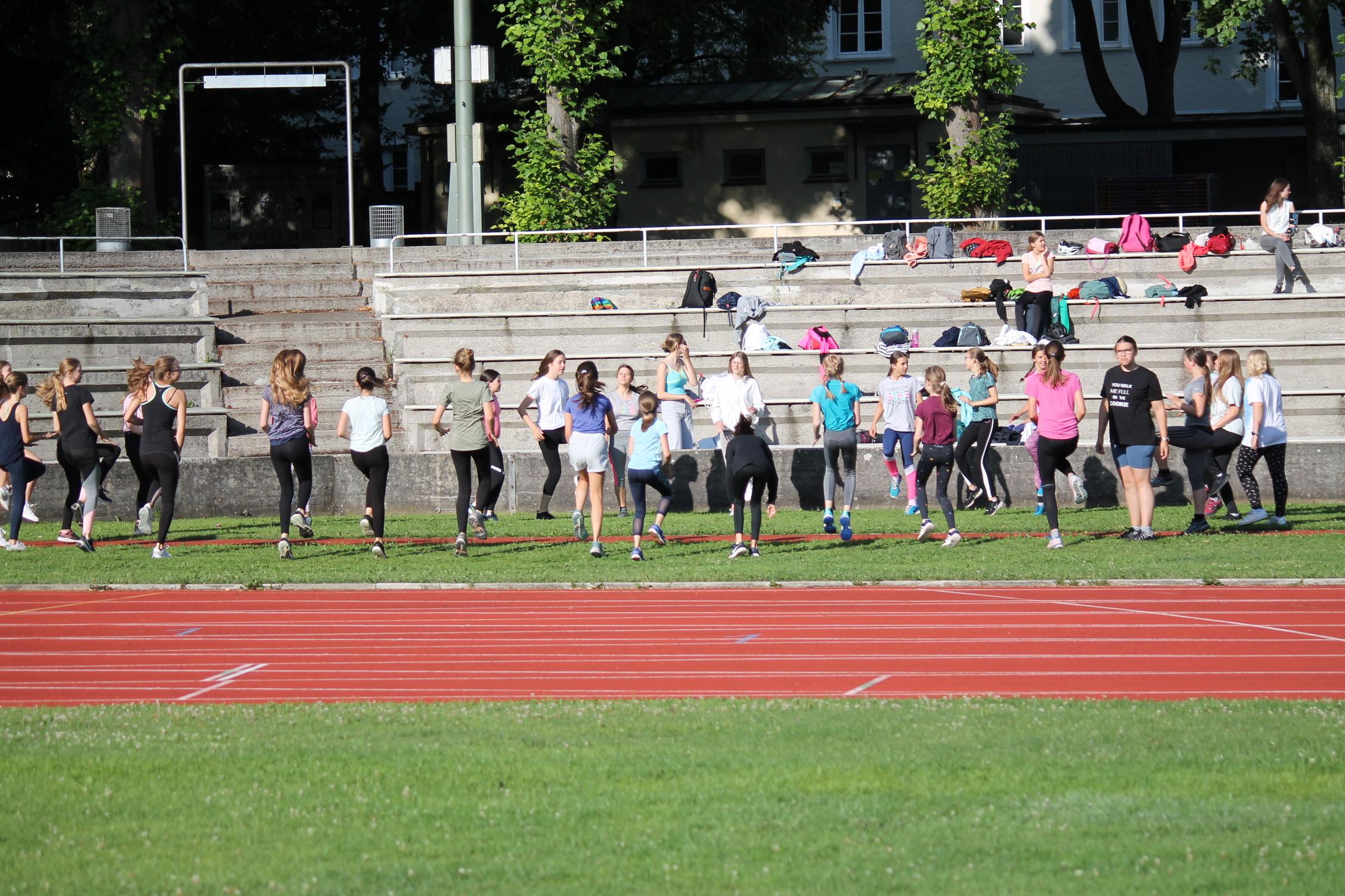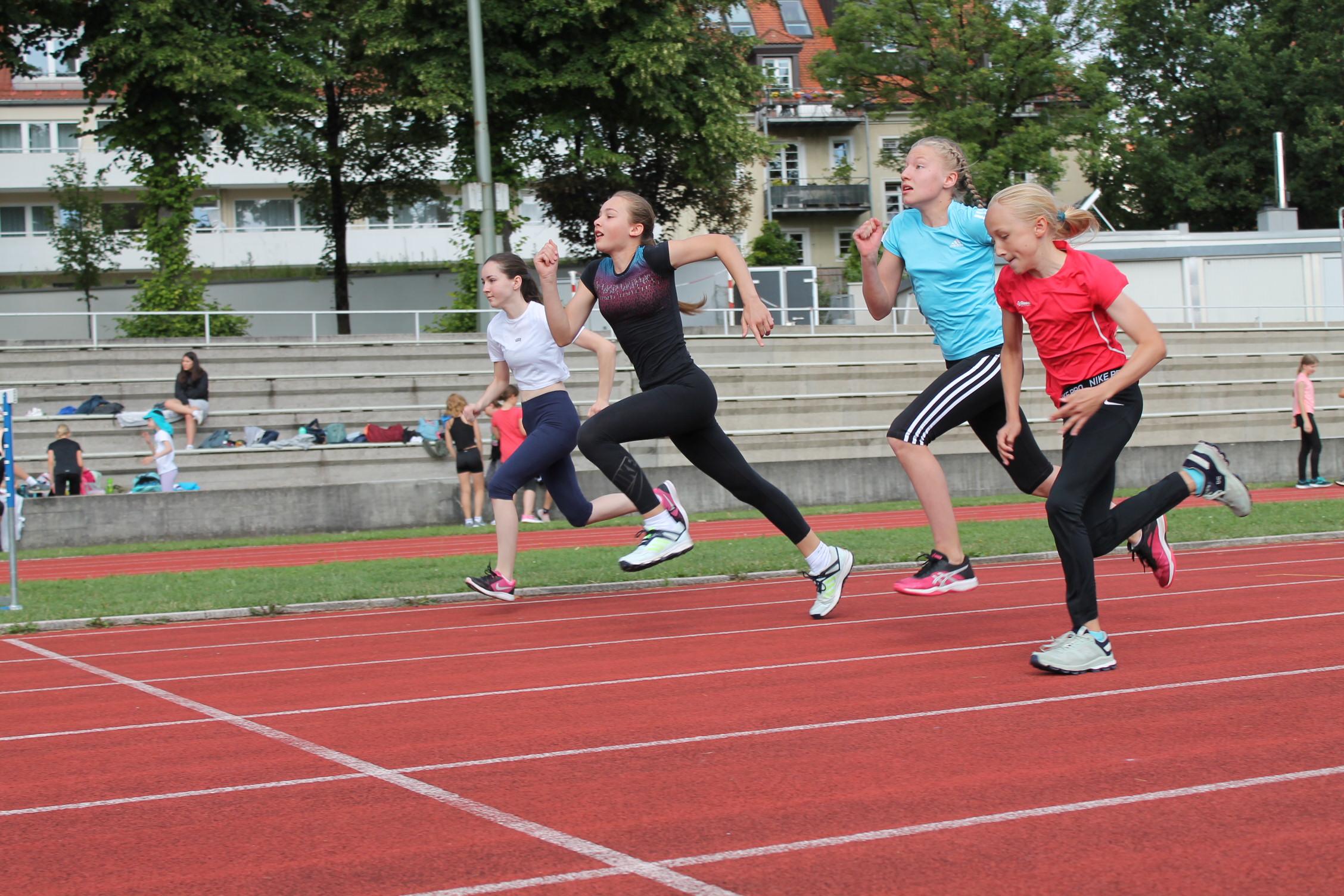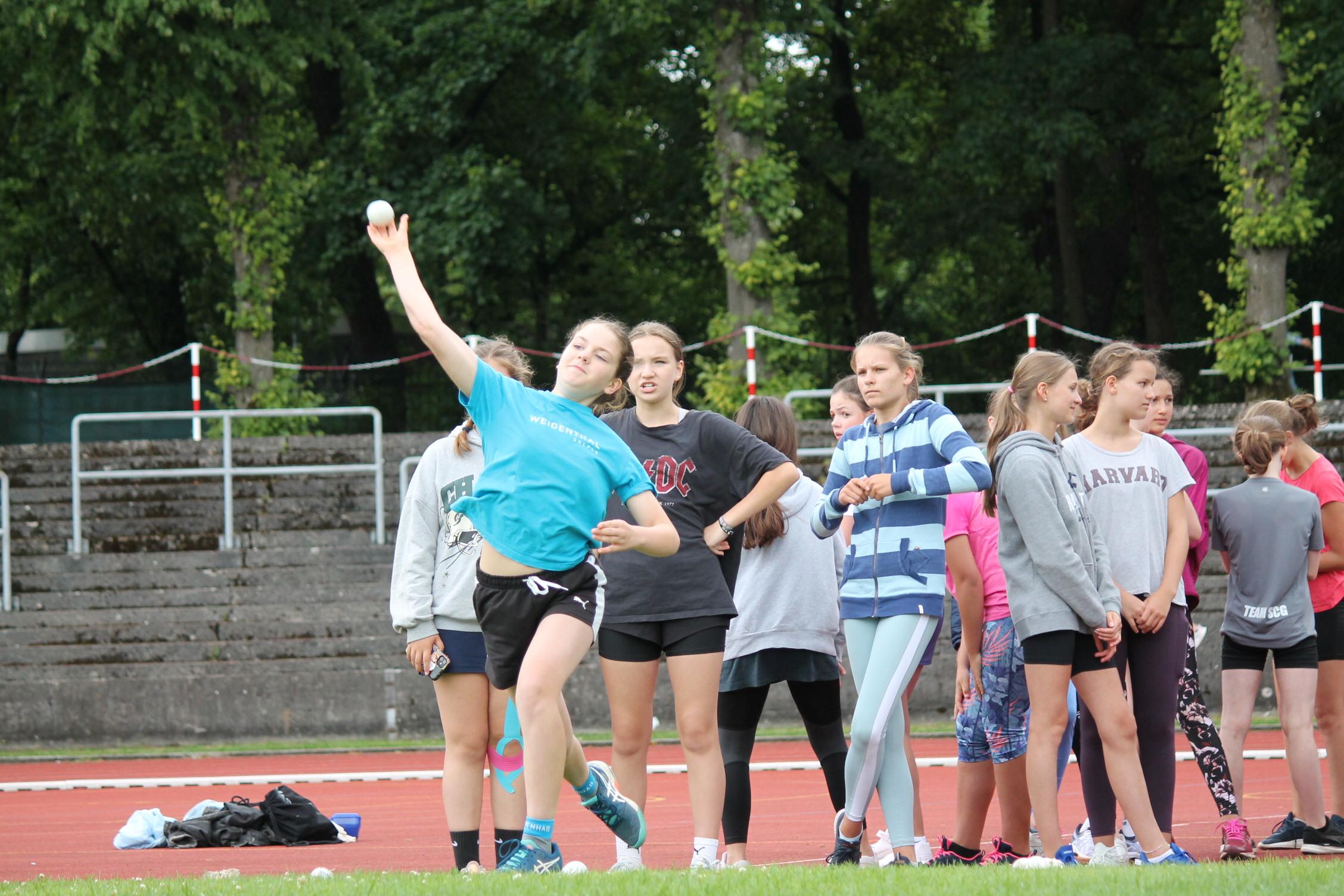 Bei den Bundesjugendspielen messen sich die Schülerinnen in drei Disziplinen Lauf (50m oder 75m je nach Alter), Wurf (80g oder 200g Ball) und Weitsprung.