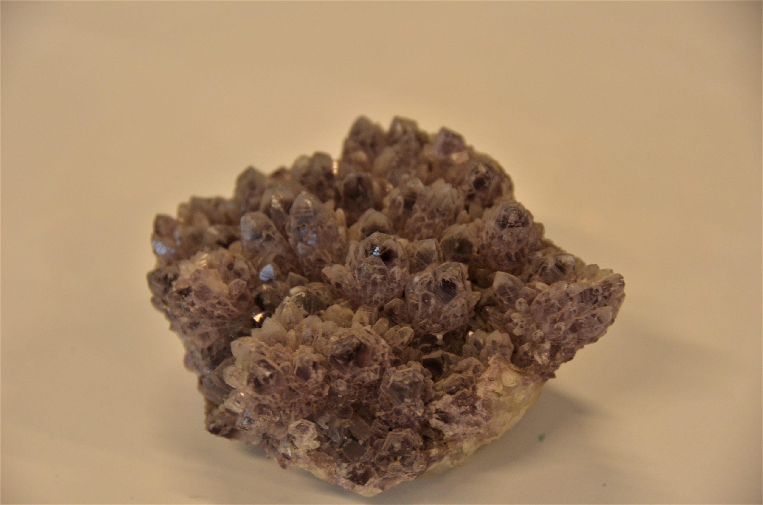 • Amethyst – Name: Quarz (Varietät) Vorkommen: Brasilien, Uruguay, Sri Lanka, Namibia, Madagaskar, Russland, Marokko, Deutschland, Österreich, Finnland Farbe: lila/violett Zusammensetzung: SiO2 Nutzung: Schmuckstein, Heilstein Besonderheit: beim Erhitzen und unter Einfluss von UV-Strahlen verlieren Amethyste ihre Farbe komplett