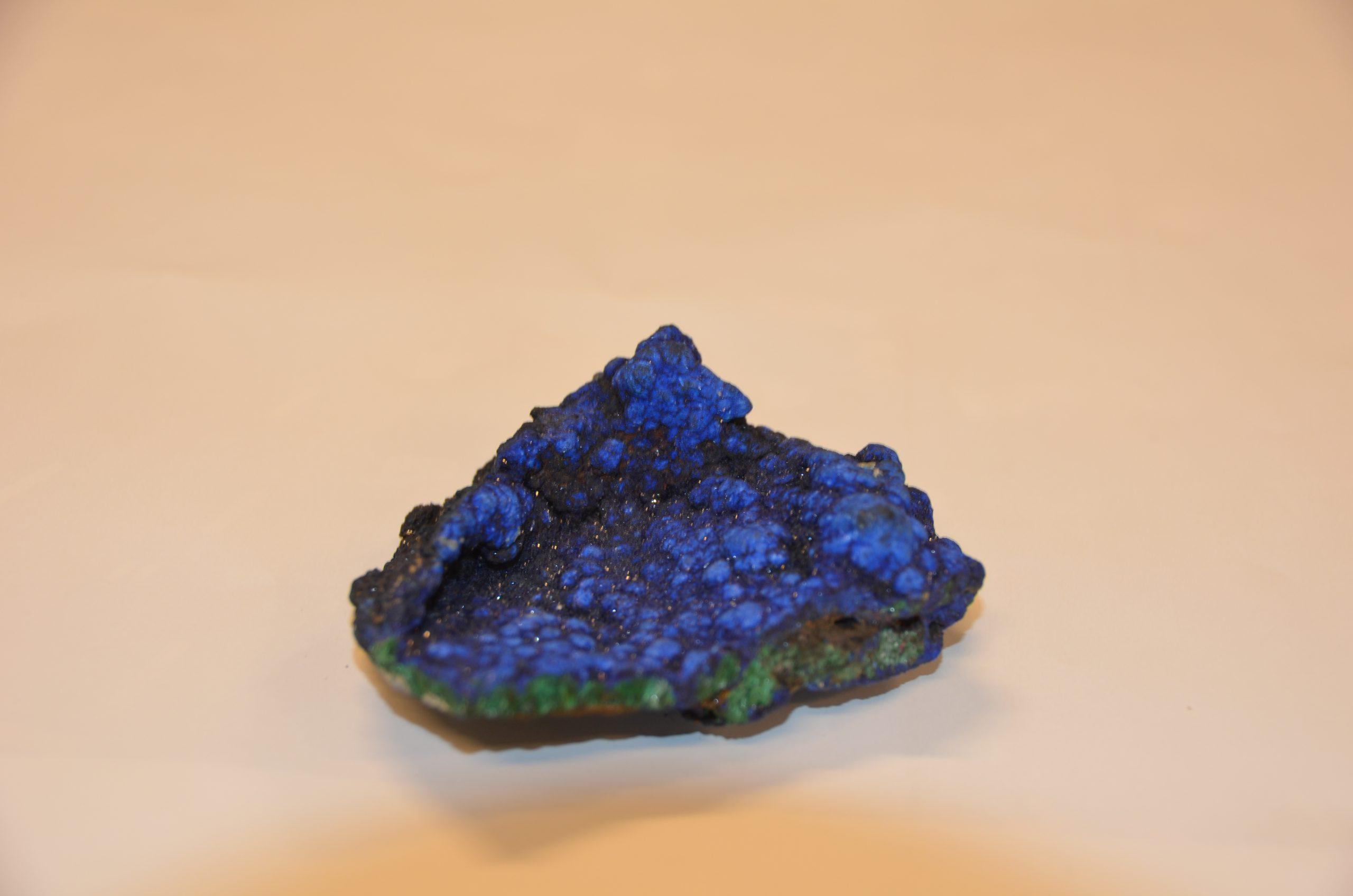 • Azurit – Name: Bergblau, Kupferblau, Chessylith Alter/Entstehungszeit: vor 4500 v. Chr. Vorkommen: Deutschland, Österreich, Schweiz, Frankreich, Spanien, Namibia, Marokko, China Farbe: blau Zusammensetzung: Cu3(CO3)2(OH)2 Nutzung: Schmuckstein, Farbpigment Besonderheit: durch Verwitterung mit Malachit entstehen grüne Stellen