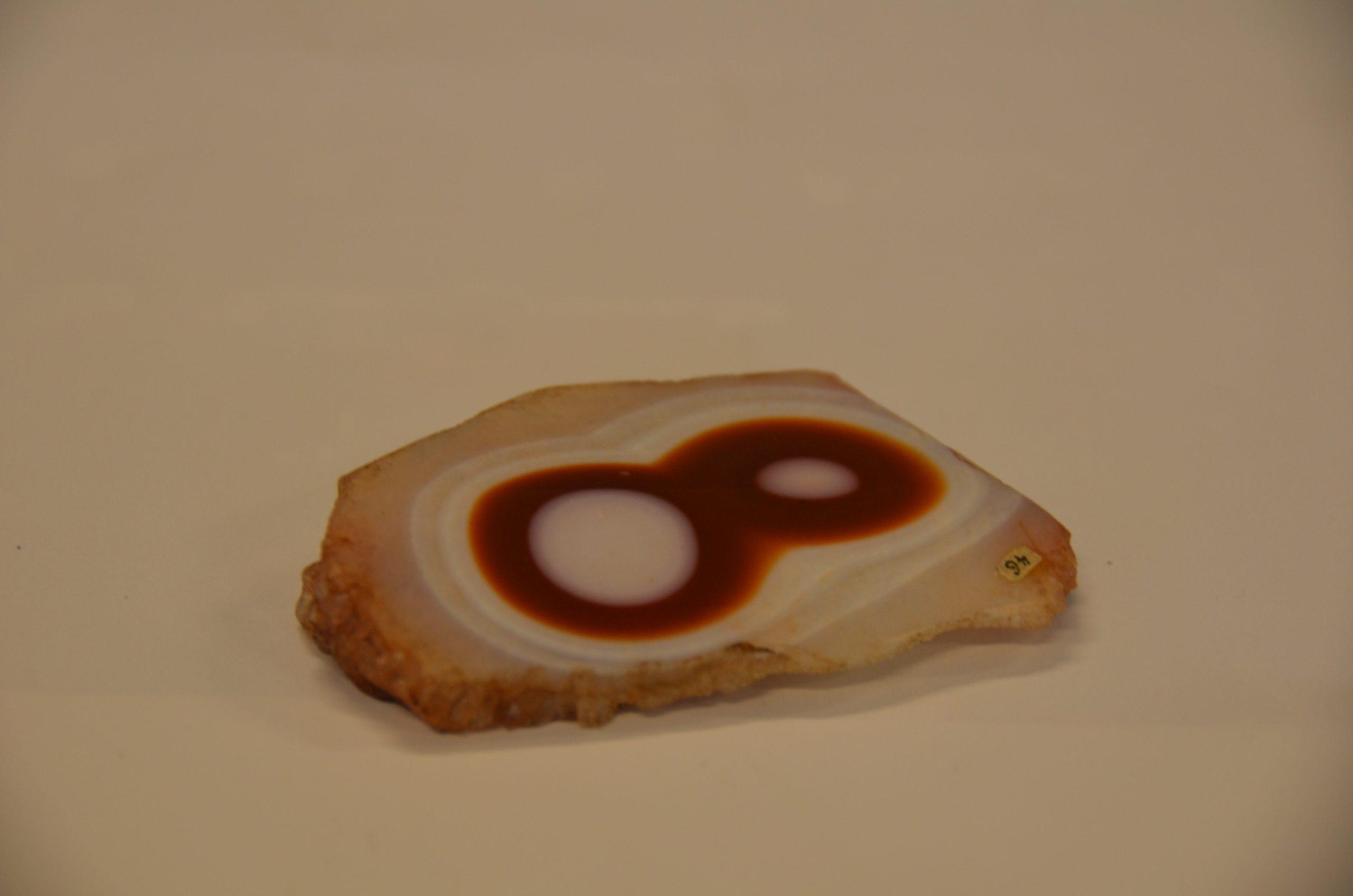 • Achat – Name: Quarz (Varietät) Vorkommen: weltweit Farbe: rosa/rot/weiß Zusammensetzung: SiO2 Nutzung: Schmuckstein, Technik (z.B. als Poliersteine) Besonderheit: spiral-/ringförmige Färbungen können vorkommen