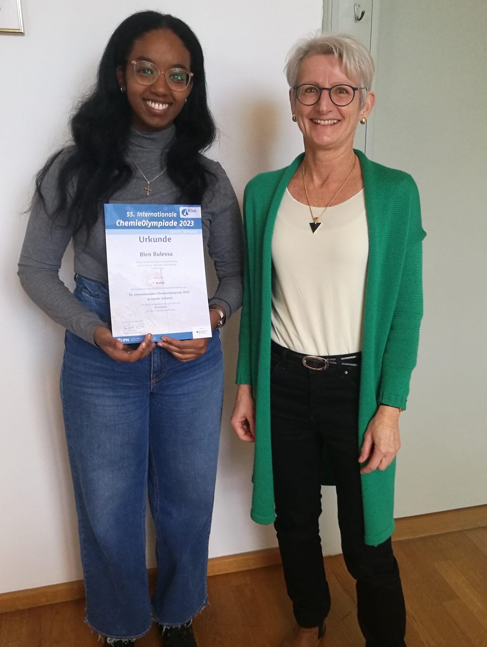 Wir gratulieren Blen Bulessa (Q12) für die inzwischen dritte erfolgreiche Teilnahme an der internationalen ChemieOlympiade und drücken ihr die Daumen für ihr aktuelles Projekt bei Jugend forscht!