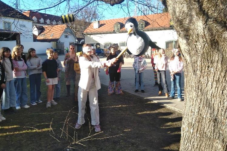 Untermalt von ABBA zog die Gesellschaft mit einer Polonaise durch das gesamte Tagesheim. Im Anschluss daran folgten zahlreiche Spiele wie Schokoladenessen, Schaumkusswettessen, Eierlauf und Reise nach Jerusalem. Der Höhepunkt war in diesem Jahr die Pinguinpinata, welche jedoch so gut gebaut war, dass selbst ein Baseballschläger es nicht schaffte, den kleinen süßen Kerl zu zerstören.