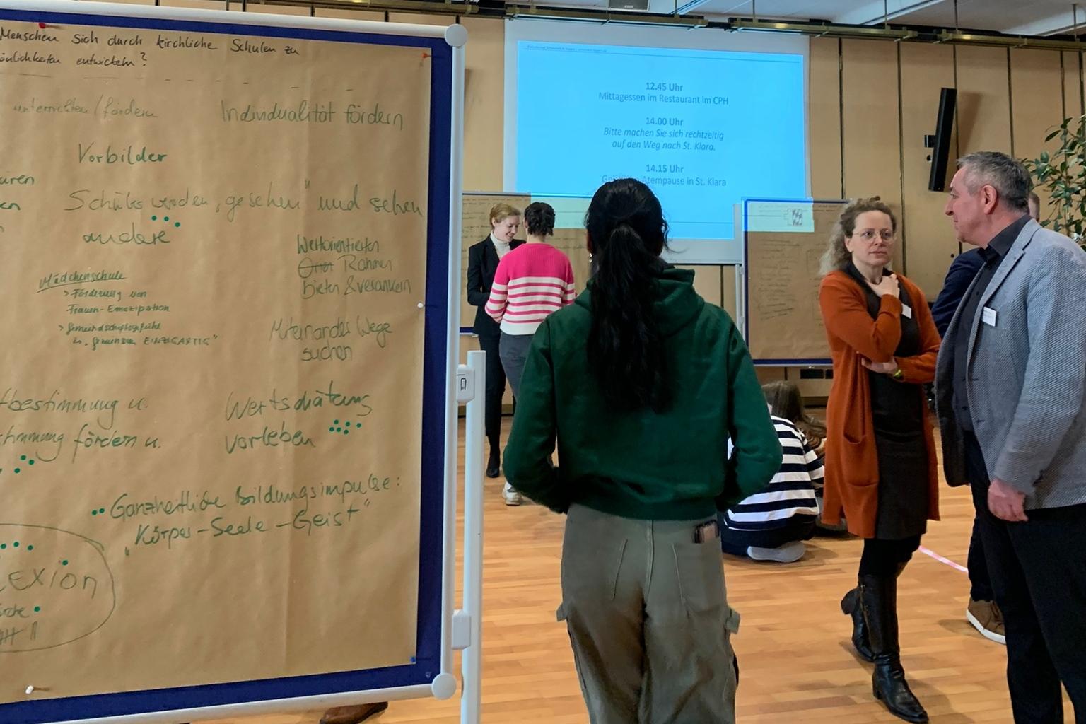 Danach war die aktive Beteiligung der Lehrkräfte gefragt, auf die das Mittagessen folgte. Nach einer Mittagspause wurden wir dazu eingeladen, an einer geistlichen Atempause in der Kirch St. Klara teilzunehmen. Zum Abschluss gab es kurze Workshops, deren Themen von den Kongressteilnehmer*innen selbst ausgewählt wurden. Zu unserer großen Freude wurden dabei Themen aus Henrikes Rede erneut aufgegriffen und gemeinsam angegangen!