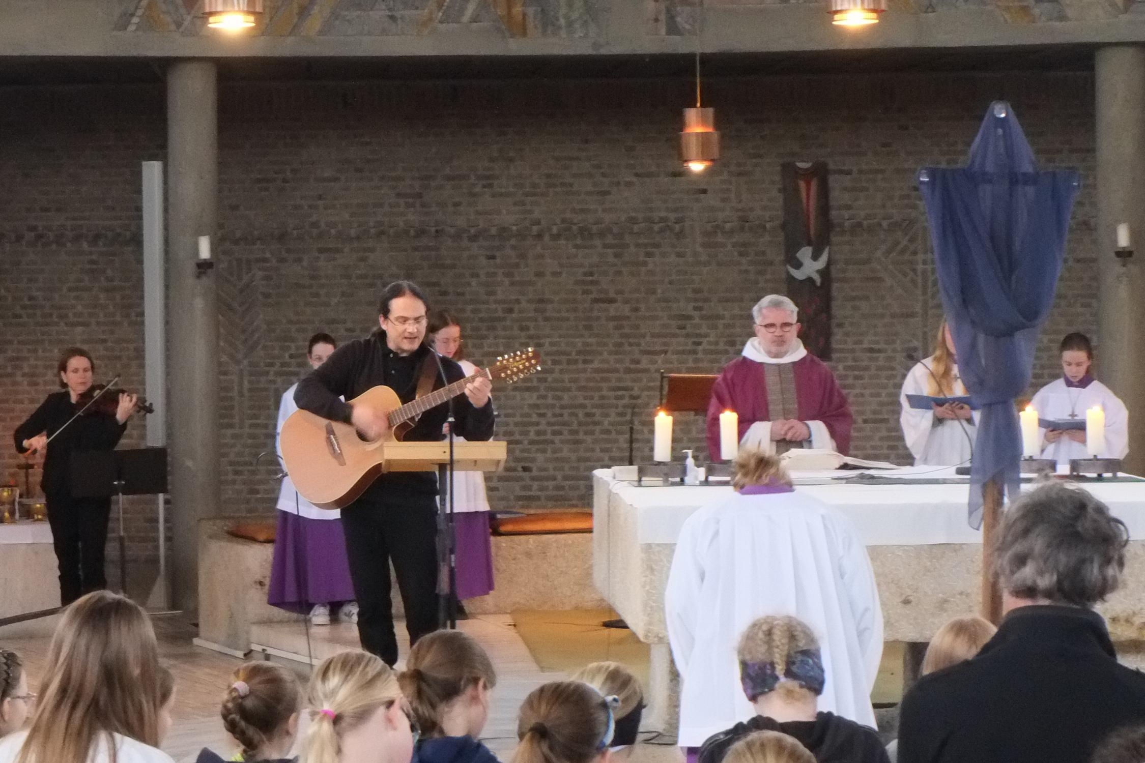 Insofern war so das Zusammenwirken der beiden Saiten-Instrumente mit dem Gesang der Schülerinnen ein musikalisch sehr stimmiges und dadurch für alle im Gottesdienst starkes emotionales Erlebnis.