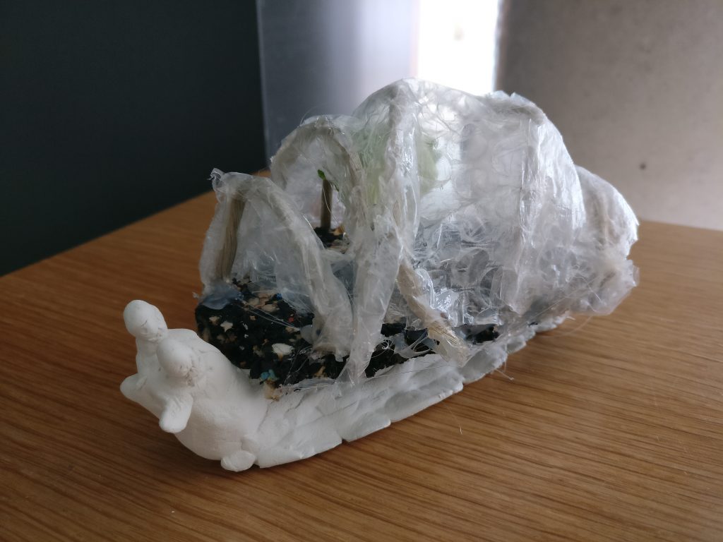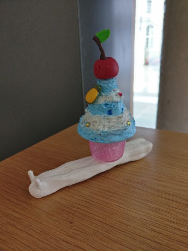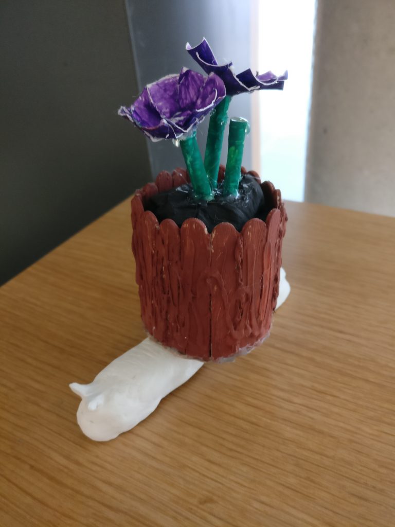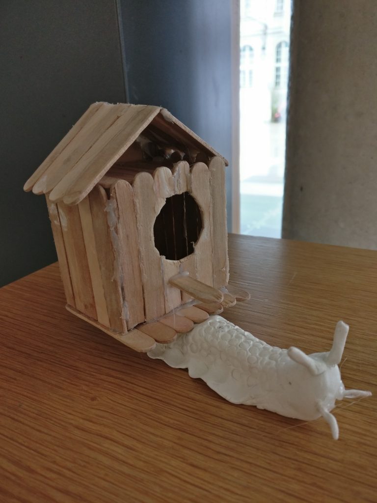 Arbeiten mit Modelliermasse und Bastelmaterialien zum Thema „Schnecke sucht Haus“.