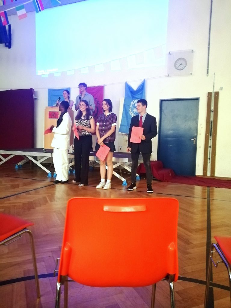 Das diesjährige RUPMUN (Rupprecht Model United Nations) am 11. Und 12 .Juli war ein beeindruckendes und lehrreiches Ereignis, das über zwei Tage hinweg stattfand. Es bot uns eine wertvolle Gelegenheit, bedeutende Verbindungen zu knüpfen und unvergessliche Erfahrungen zu sammeln. Der erste Tag begann mit einer inspirierenden Eröffnungsrede, die uns auf das bevorstehende Ereignis einstimmte. Anschließend wurden die Teilnehmer in verschiedene Komitees aufgeteilt, in denen wir aktuelle globale Probleme diskutierten und Lösungen erarbeiteten. Die Debatten waren intensiv und herausfordernd, aber gleichzeitig äußerst aufschlussreich. Es war für uns sehr interessant uns in die Meinung des zu vertretenden Landes hineinzuversetzen und dabei die Debatte mit vielen interessanten Fakten und Meinungen weiterzubringen. Am zweiten Tag setzten wir die Diskussionen in unseren Komitees fort und nahmen an einigen unterhaltsamen Aktivitäten teil. Das Ereignis endete schließlich mit einer feierlichen Abschlusszeremonie, bei der wir die Möglichkeit hatten, unsere Resolutionen vorzustellen. Diese waren das Ergebnis harter Arbeit und engagierter Diskussionen. Es war inspirierend zu sehen, wie unterschiedliche Ansichten und Ideen zusammenkamen, um konstruktive Lösungen für komplexe Probleme zu finden. Wir sind außerordentlich dankbar, dass wir an diesem außergewöhnlichen Ereignis teilnehmen durften. Es war eine einzigartige Gelegenheit, unsere Fähigkeiten in den Bereichen Rhetorik, Diplomatie und Verhandlungsführung zu verbessern. Wir haben viel über die Funktionsweise der Vereinten Nationen gelernt und unsere Englischkenntnisse in einer internationalen Umgebung verbessert. Die RUPMUN 2023 war ein herausragendes Erlebnis für uns alle. Wir sind stolz darauf, Teil einer so engagierten und talentierten Gruppe von Schülern zu sein, die sich für globale Angelegenheiten interessieren und bereit sind, aktiv an ihrer Lösung mitzuwirken. Die Erfahrungen, die wir während dieser Konferenz gesammelt haben, werden uns noch lange in Erinnerung bleiben und uns auf unserem weiteren Bildungsweg begleiten. Wir freuen uns darauf, auch in Zukunft an weiteren Veranstaltungen teilzunehmen, um unser Wissen und unsere Fähigkeiten weiter auszubauen. Die RUPMUN wurde vom P-Seminar am Rupprecht Gymnasium veranstaltet, und wir möchten allen Organisatoren und Helfern herzlich danken, die dieses Ereignis ermöglicht haben. Ein besonderer Dank gilt Frau Doepner, die uns begleitet hat und uns während der Konferenz unterstützt hat. Eure Schülersprecherin Navika Bhardwaj mit dem Team RUPMUN