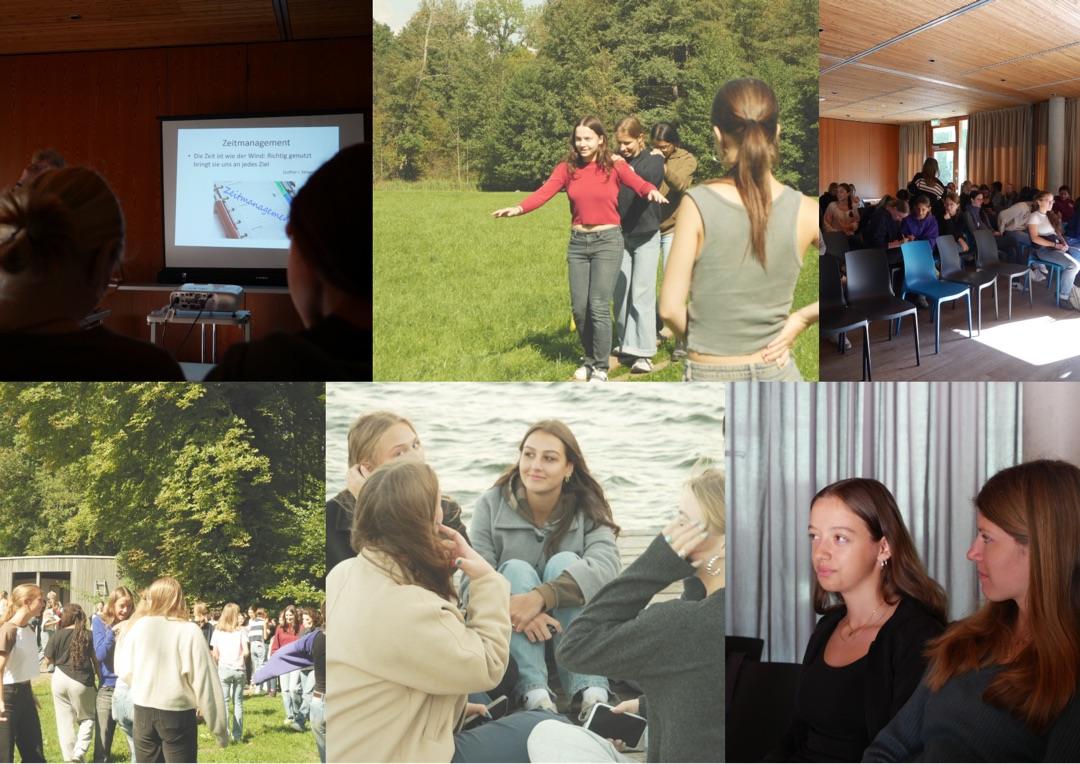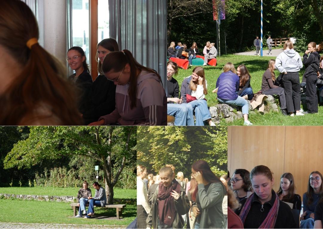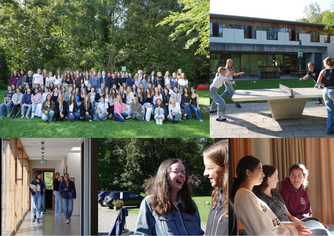 Am 18.09. war es soweit: Wir, der erste Abiturjahrgang aus dem G9, machten uns auf den Weg ins Possenhofen Check-In Seminar der Oberstufe. In den nächsten Tagen bis zum 20.09. würden uns schönes Wetter am Starnberger See, eine Menge spannender Teambuilding Einheiten und Workshops erwarten. Nach der Ankunft und einem stärkenden Mittagessen ging es in die erste Workshop Phase: Wir lernten wertvolle Fakten zum Thema Kommunikationskompetenz, welche uns Frau Doepner und Frau Steglich u.a. durch visuelle Veranschaulichung erfolgreich näher brachten. Den Abend nach dem Essen ging es dann in eine sehr lustig-lange Werwolf Session mit persönlich eingebauten Sound Jingles einer Mitschülerin! Donnerstags wurden die Schritte zur Berufsorientierung in der Oberstufe durchgesprochen und am Nachmittag durch aktive Team-Challenges mit einem achtfachem Parkour abgelöst. Die kniffeligen Aufgaben (von „eine Leiter im Freien überqueren“ bis hin zum „mit verbundenen Augen ein Quadrat mittels Seil formen“) sorgten erneut für viele Lacher und gute Stimmung. Anschließend konnten diejenigen, die sich dabei noch nicht genügen ausgepowert hatten, in einem Tischtennisturnier gegen Hr. Rolle & Fr. Steglich glänzen! Wenige Stunden später, an Schlaf war nicht wirklich zu denken, fanden sich Freitagmorgen alle angehenden Oberstuflerinnen ein letztes Mal im Plenum zusammen. Frau Lutz stellte uns pünktlich zum Abschluss das Thema Zeitmanagement vor und gab uns allerlei ausrüstende Tipps an die Hand. Um 11:00 Uhr schließlich endete unser erfolgreiches Check-In Seminar mit einer letzten gemeinsamen Gruppenaufgabe.