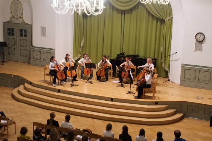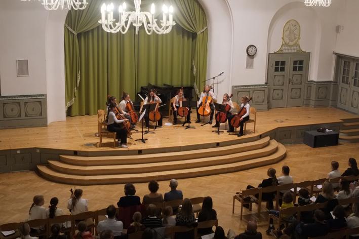 Während die Solo-Musikerinnen am Klavier und an der Klarinette brillierten, beeindruckten die Duos mit ihren Celli. Die größeren Musikgruppen, wie das Cello-Ensemble von Frau Schreiber und das Kammermusik-Ensemble von Frau Fingerle-Pfeffer, überzeugten mit einem harmonischen und warmen Gesamtklang.
