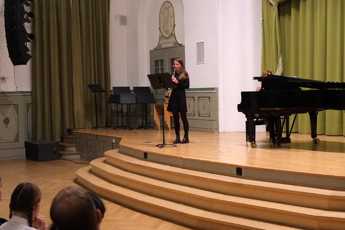 In unserer schönen Aula präsentierten sich die jungen Musikerinnen mit einem interessanten und kurzweiligen Programm.