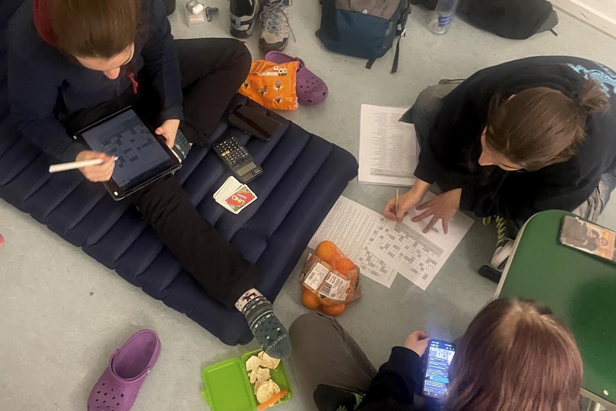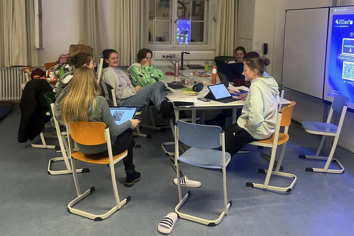 Auch die jüngeren Jahrgänge hatten mit den Aufgaben alle Hände voll zu tun. Um zwischendurch den Kopf wieder freizubekommen, gab es für die Klassen 5 bis 7 um 21:30 Uhr ein Versteckspiel im Schulhaus. Wie jedes Jahr war das ein voller Erfolg und sorgte für viel Spaß. Drei Verstecke waren so gut, dass sie bis zum Ende nicht gefunden wurden – nochmal herzlichen Glückwunsch an die Gewinnerinnen und ein großer Dank an die Lehrkräfte, die motiviert die Schülerinnen gesucht haben!