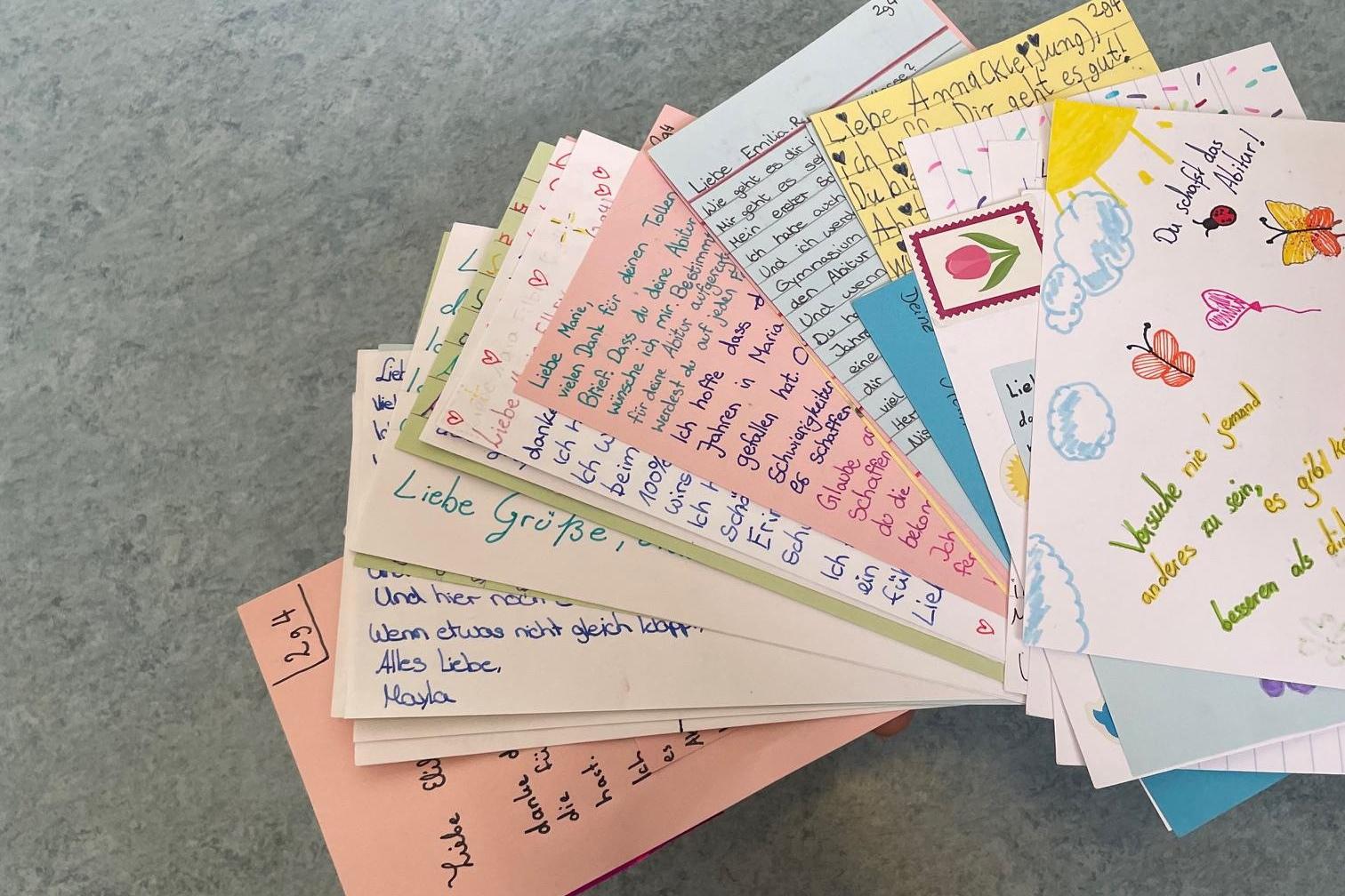 Diese Briefe wurden dann in den 5. Klassen verteilt, welche sich sehr darüber freuten. Im Anschluss schrieb im Rahmen des Deutschunterrichts jede Fünftklässlerin einen Antwortbrief an ihre Q12-Schülerin und wünschte ihr u.a. „viel Glück“ und Durchhaltevermögen für die nächsten zwei Jahre in der Oberstufe und das dann anstehende Abitur.